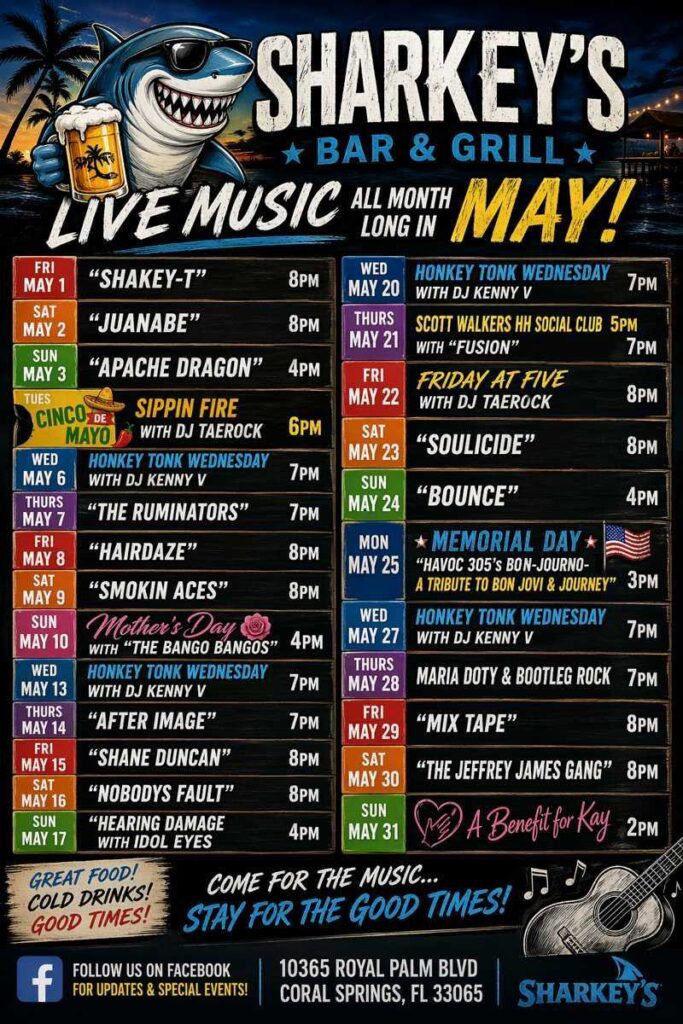 Pair the electrifying music with Sharkey’s vibrant atmosphere, full bar, and late-night menu, making it the perfect spot for an unforgettable night out. Whether you’re a die-hard fan or just looking for a fun evening, this is a show you do not want to miss.